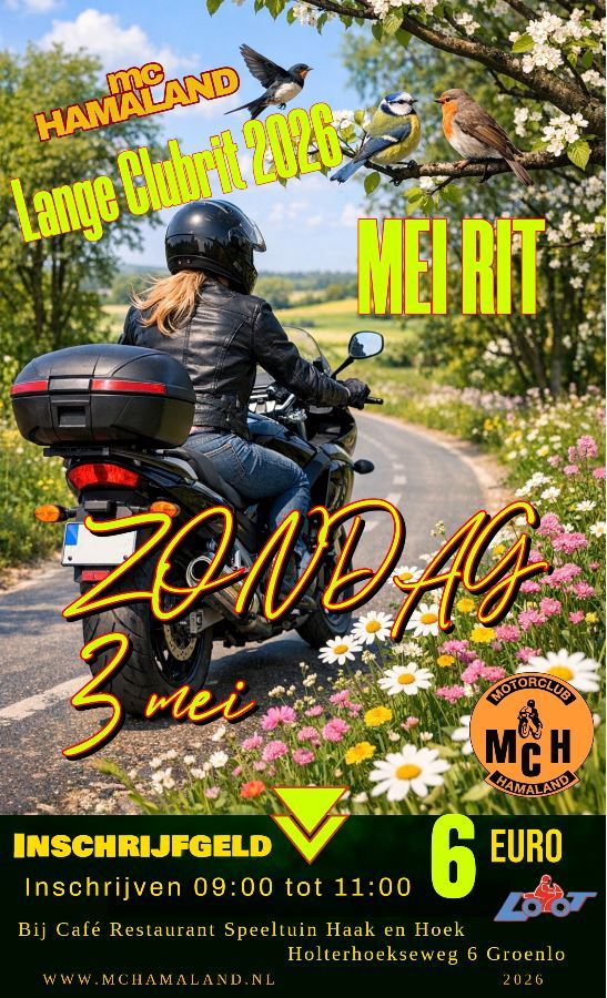 Zondag 3 Mei betreft: Lange clubrit 2026 MEI RIT.